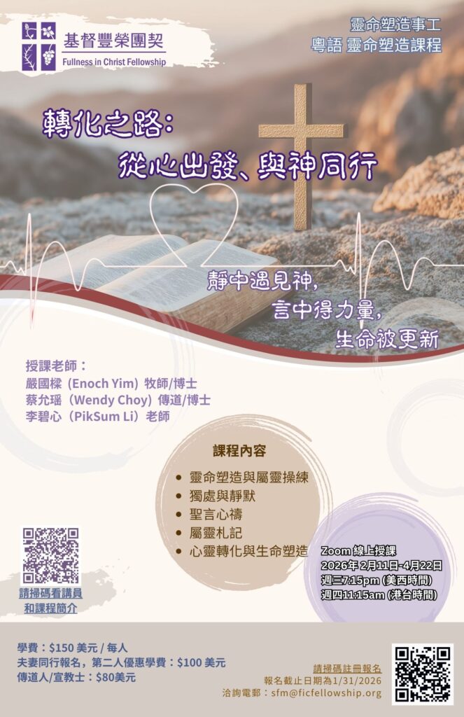 2026 美加 粵語靈命塑造課程 課程表2025-2026屬靈塑造第一年(SF1)屬靈傳統的操練